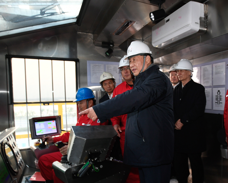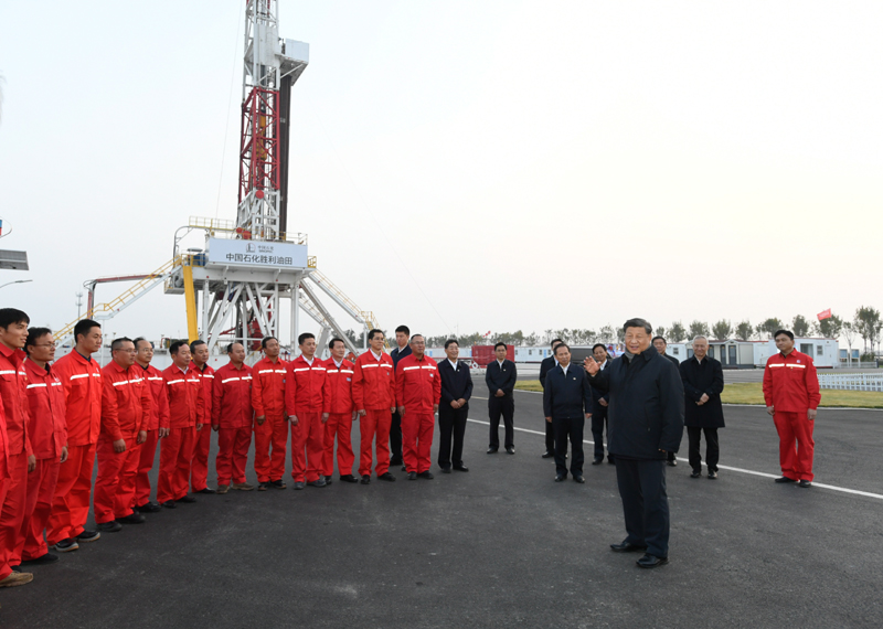離開(kāi)研究院,習近平來(lái)到位于東營(yíng)市萊州灣的勝利油田萊113區塊,了解二氧化碳捕集、利用與封存技術(shù)研發(fā)應用情況。他登上二層鉆井平臺,察看鉆井自動(dòng)化設備,走進(jìn)操作室,同正在作業(yè)的工人親切交流。今年是勝利油田發(fā)現60周年。習近平代表黨中央向為我國能源事業(yè)作出貢獻的石油工作者們表示崇高敬意。習近平叮囑大家繼承和發(fā)揚老一輩石油人的革命精神和優(yōu)良傳統,始終保持石油人的紅色底蘊和戰斗情懷,為社會(huì )主義現代化建設事業(yè)作出更大貢獻。