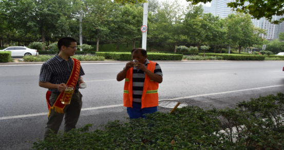一、高溫送清涼,義務(wù)送水活動(dòng)。近日,持續的高溫席卷鄭州。即使是這樣的高溫天氣,環(huán)衛工人仍頭頂烈日,堅守在高溫一線(xiàn),確保轄區內整潔有序、干凈衛生。7月14日上午,市建投公司黨員志愿者自備祛暑茶水,帶著(zhù)水壺、水杯,慰問(wèn)了酷暑中仍然堅守在一線(xiàn)的鄭東新區環(huán)衛工人,為他們送上了夏季“解渴水”,感謝高溫下堅守崗位的他們?yōu)榄h(huán)衛工作所付出的辛苦和汗水,并叮囑大家一定要加強防暑措施,注意安全。此次活動(dòng),不僅在這個(gè)夏天為一線(xiàn)環(huán)衛人員送來(lái)了清涼,更彰顯了來(lái)自企業(yè)的愛(ài)心和責任。
