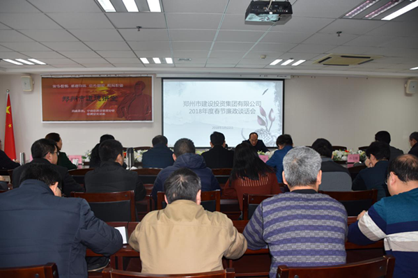 為貫徹落實(shí)習近平總書(shū)記在十九屆中央紀委二次全會(huì )上的重要講話(huà)精神和市委書(shū)記馬懿同志1月18日上午在全市領(lǐng)導干部春節廉潔談話(huà)會(huì )上的講話(huà)精神,提醒大家春節期間嚴格遵守廉潔自律規定,著(zhù)力營(yíng)造風(fēng)清氣正、文明祥和的節日環(huán)境,1月22日上午,集團公司召開(kāi)了2018年度春節廉政談話(huà)會(huì )。集團公司全體班子成員以及各部門(mén)、各項目部、各控股公司負責人、中層副職以上干部共40余人參加了本次會(huì )議。