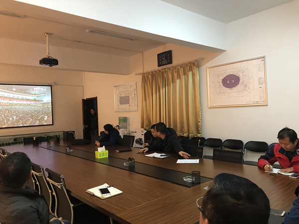 文博中心項目部:利用有限場(chǎng)地,通過(guò)直播平臺或手機端組織員工收看會(huì )議盛況。