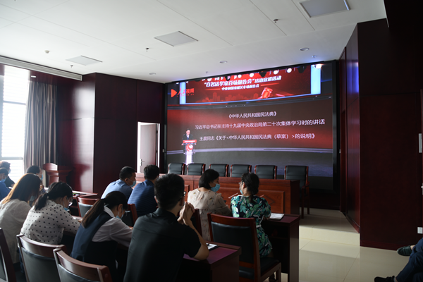 為切實(shí)加強民法典學(xué)習宣傳教育,推動(dòng)民法典學(xué)習宣傳走入日常生活,根據國資委法規處《關(guān)于組織集中收看2020年“雙百”活動(dòng)中央和國家機關(guān)專(zhuān)場(chǎng)報告會(huì )的通知》要求,集團公司法務(wù)審計部于2020年7月29日下午組織集團員工在集團公司17樓會(huì )議室收看人民網(wǎng)《民法典》直播。
