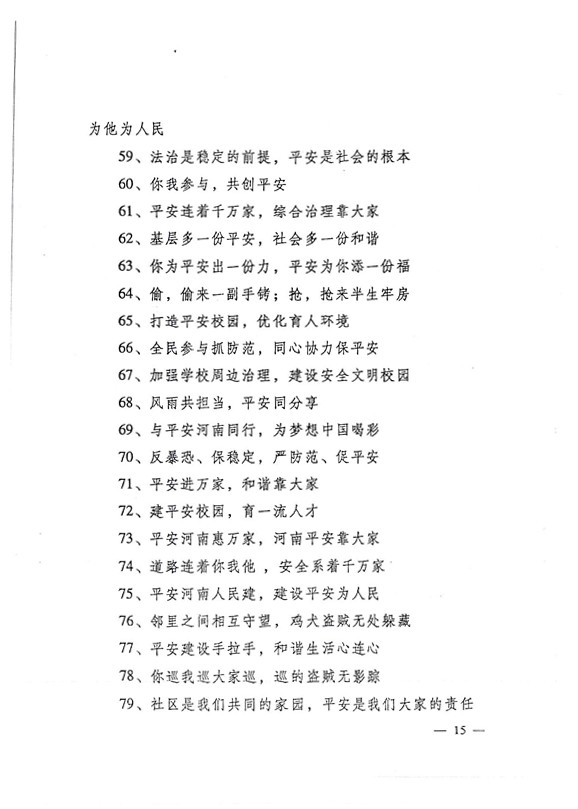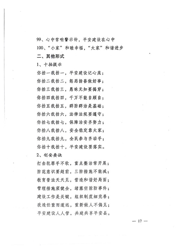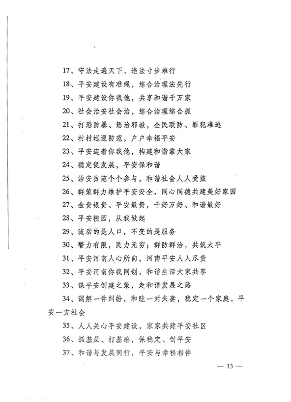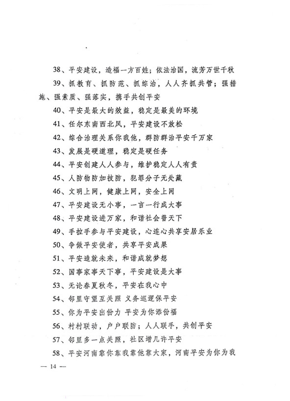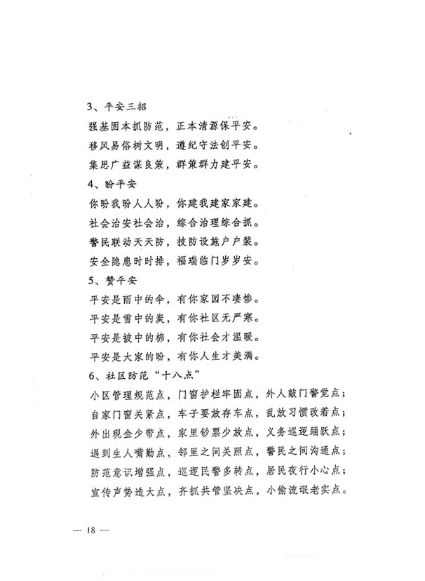 平安兩字重千斤,社會(huì )穩定得民心。 創(chuàng )建平安人人有責,構建和諧人人參與。